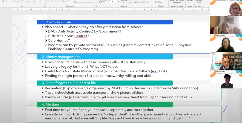 What lies ahead for our children’s future is a concern for every parent or caregiver, and for children with additional needs, the move from school years into adulthood can cause particular anxiety. Careful planning and support are key to a smooth transition. On Saturday 22 January, SNNHK was delighted to host a dynamic online panel of speakers who shared insights, experience and practical advice on Transitioning to Adulthood.